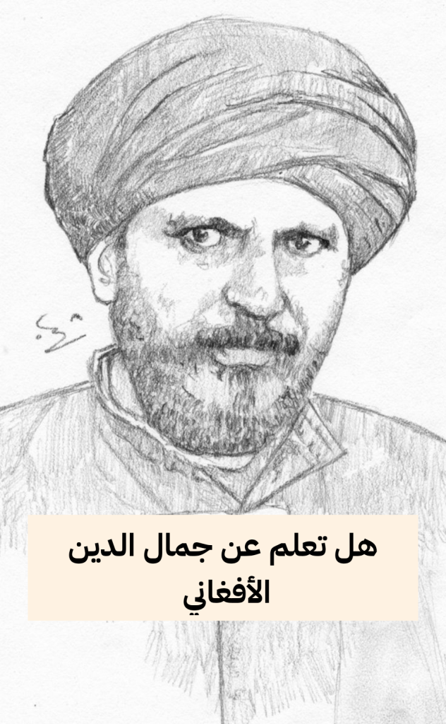 رسم توضيحي للمفكر جمال الدين الأفغاني، رمز السعي للمعرفة والإصلاح في العصر الحديث.
